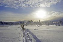 Der Februar hat uns in seinen letzten Atemzügen aber noch eine kleine Ladung Schnee vor die Pfoten geworfen, die Temperaturen in Abschiedsstimmung nochmal bis über die minus 30 heruntergeschraubt und dann, über unsere 5-tägige Hundeschlittentour hinweg, ganz langsam ausgeatmet und Raum für seinen Nachfolger geöffnet.