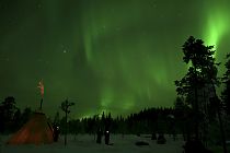 Die Kulisse, die uns tagsüber umgeben und in der Dunkelheit sogar noch eine kleine Perle auf den schon überquellenden Schatzberg der Natur obenauf gelegt hat, hätte nicht traumhafter sein können: eine auf das allermärchenhafteste eingeschneite Winterlandschaft, ein unvergleichlicher Sternenhimmel und ein tanzendes Polarlicht – das war unser unerreichbares Bühnenbild dieser Tage!